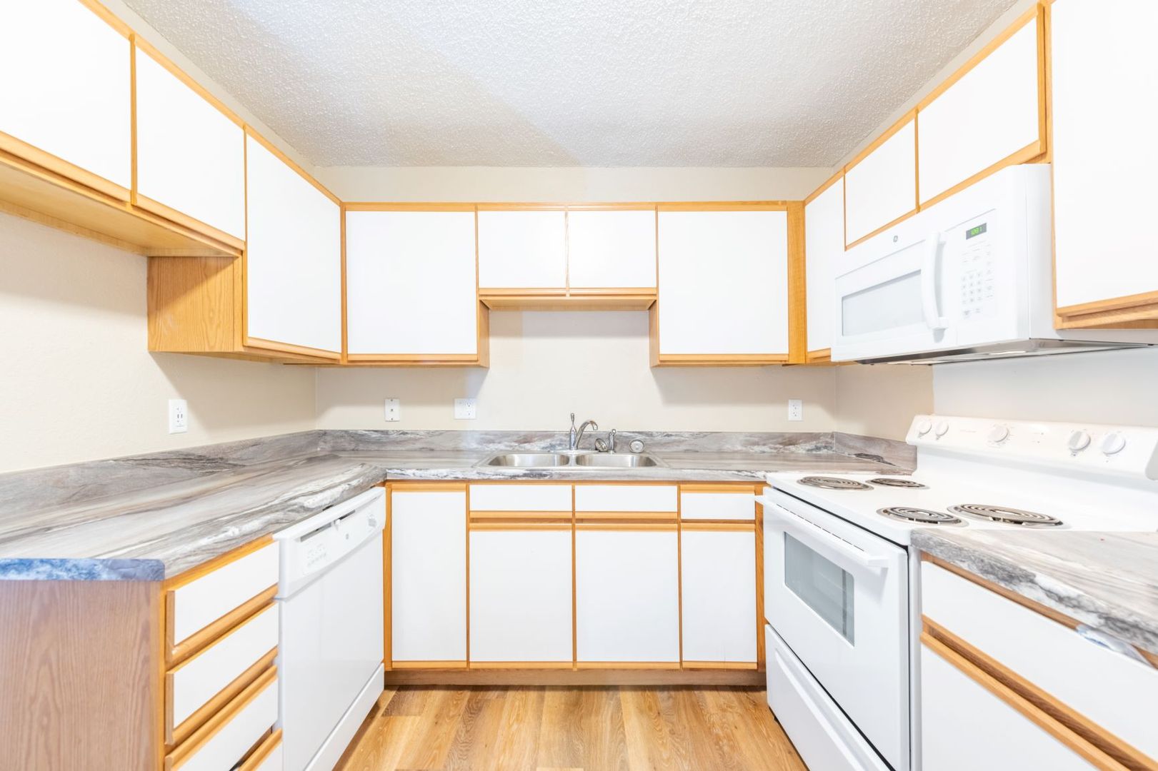 Our beautifully updated 2 bedroom apartment homes feature contemporary countertops, modern lighting, plush new carpeting and wood plank flooring.