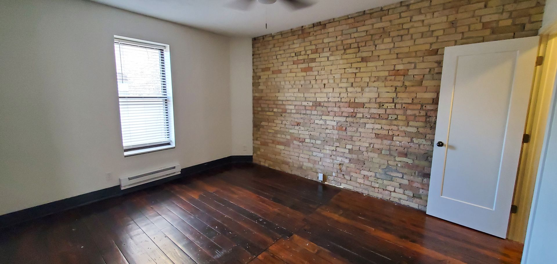This lovely apartment has exposed brick, hardwood floors, and shares a fenced outdoor patio area. 1 bedroom, 1 bath plus bonus space perfect for dining or office. FREE laundry!
