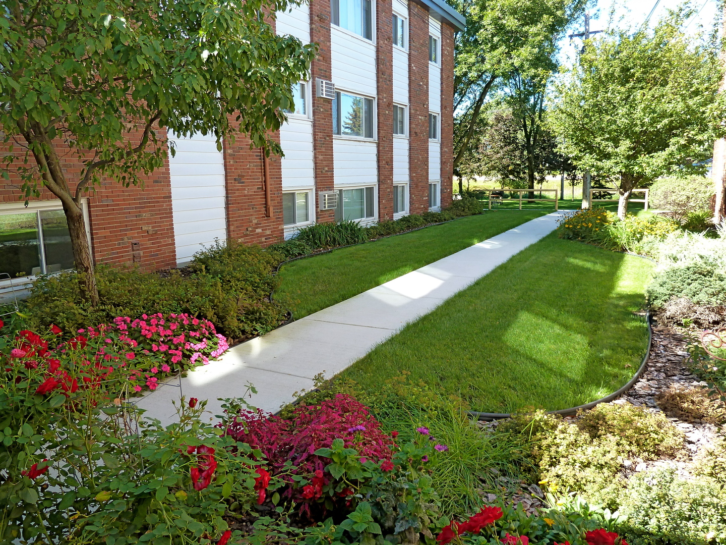 Well-lit grounds and off street parking lot